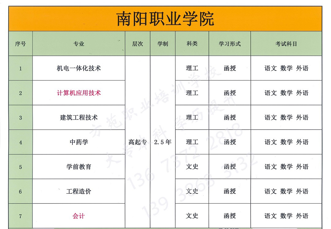 南阳职业学院--成人大专本科学历