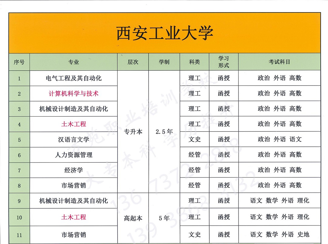 西安工业大学--成人大专本科学历